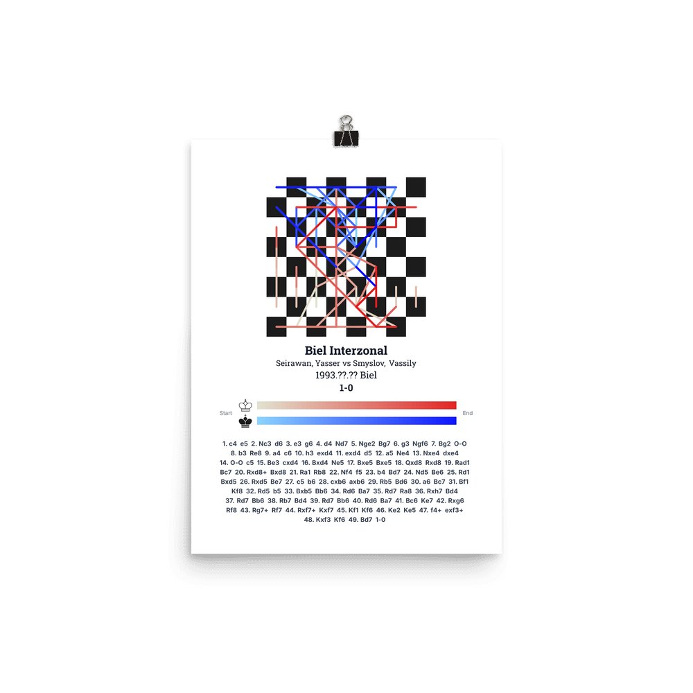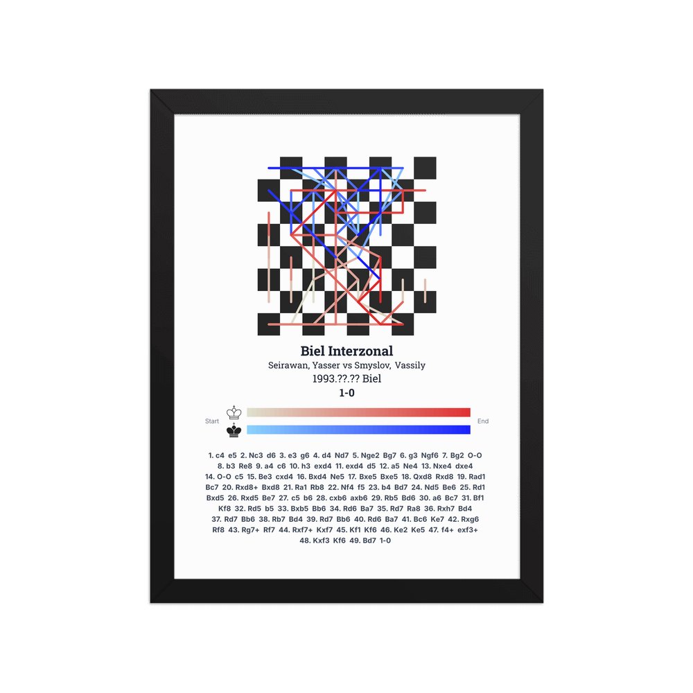 Museum-quality poster on thick, durable matte paper. A sharp, clean look for any chess visualisation.