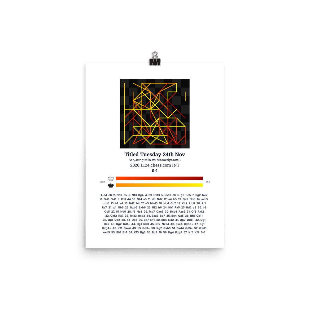 Museum-quality poster on thick, durable matte paper. A sharp, clean look for any chess visualisation.