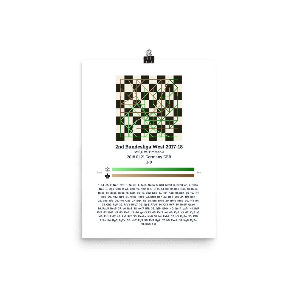Museum-quality poster on thick, durable matte paper. A sharp, clean look for any chess visualisation.