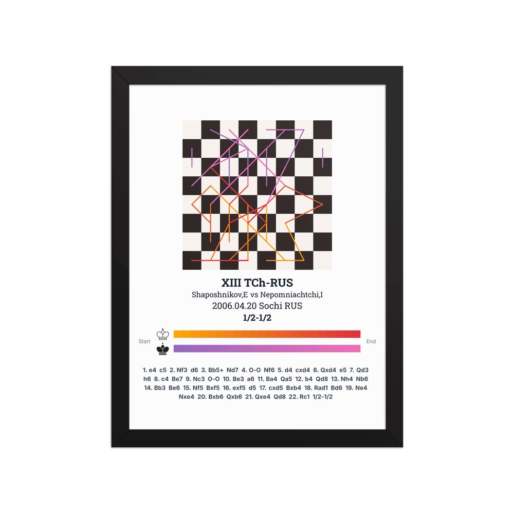 Museum-quality poster on thick, durable matte paper. A sharp, clean look for any chess visualisation.