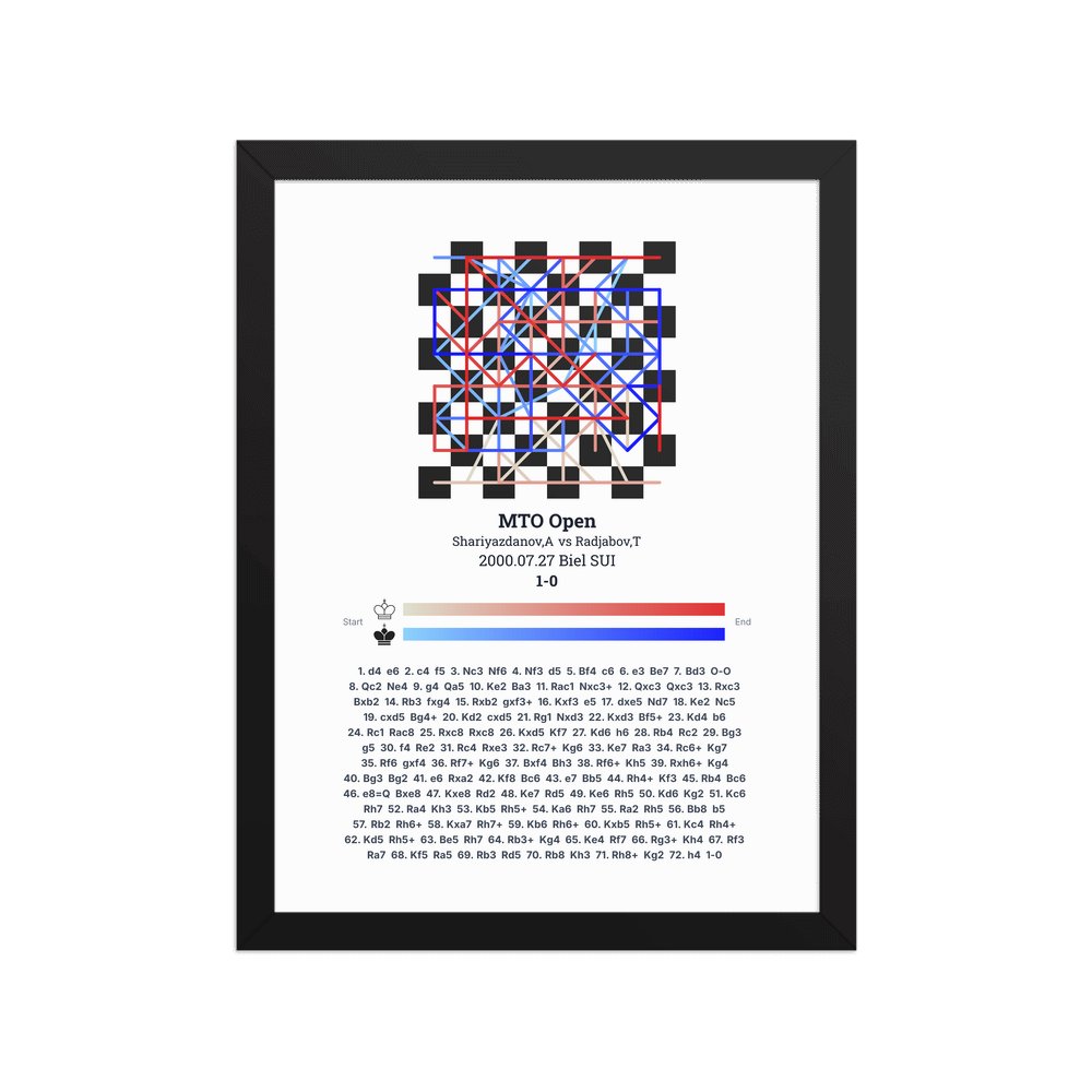 Museum-quality poster on thick, durable matte paper. A sharp, clean look for any chess visualisation.