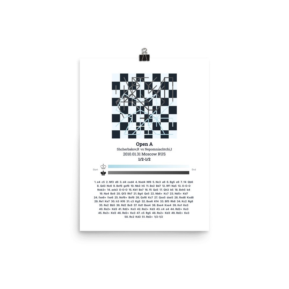 Museum-quality poster on thick, durable matte paper. A sharp, clean look for any chess visualisation.