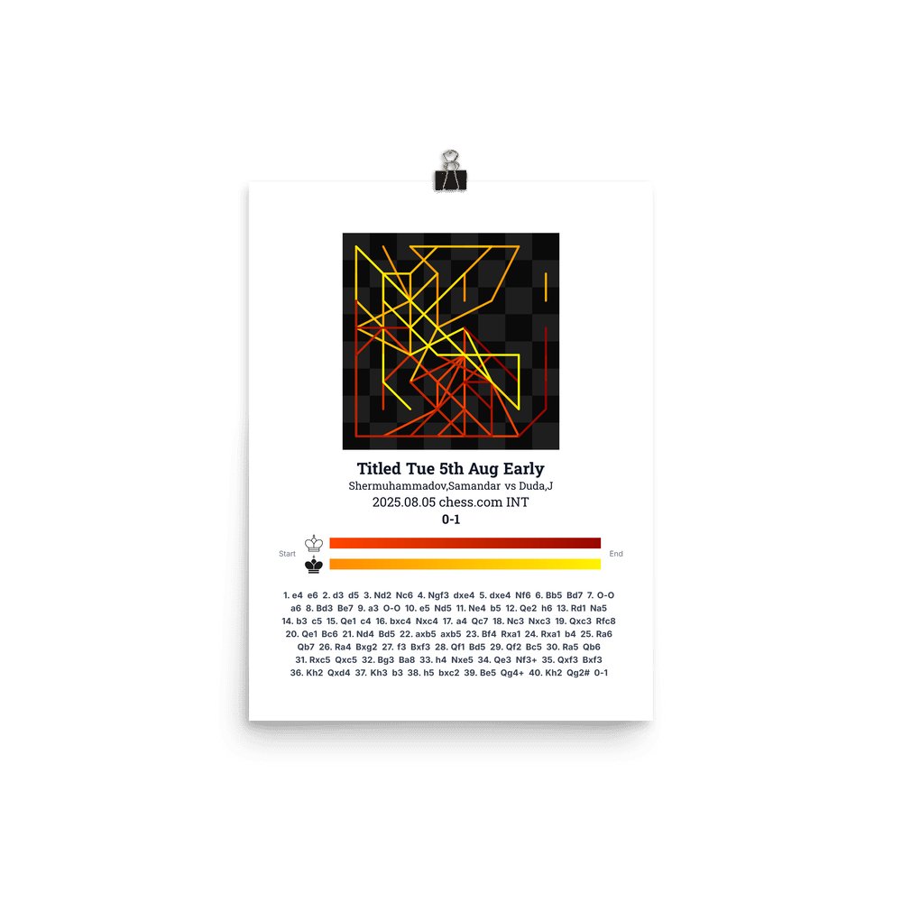Museum-quality poster on thick, durable matte paper. A sharp, clean look for any chess visualisation.