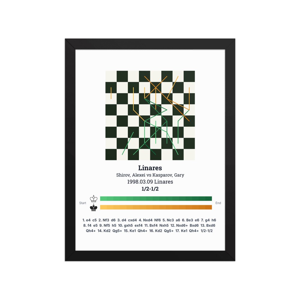 Museum-quality poster on thick, durable matte paper. A sharp, clean look for any chess visualisation.