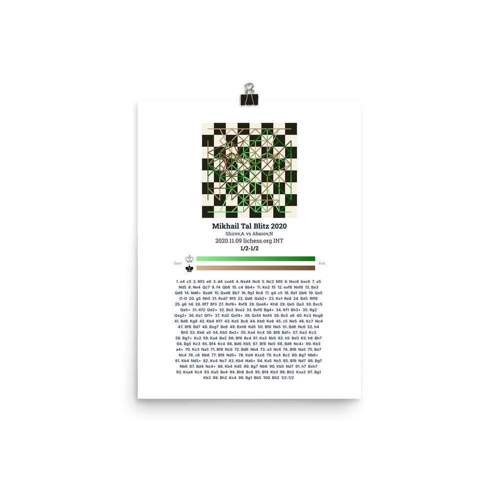 Museum-quality poster on thick, durable matte paper. A sharp, clean look for any chess visualisation.