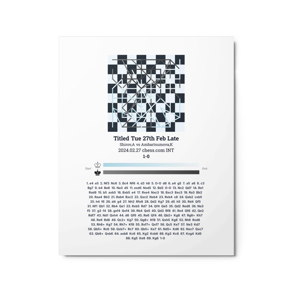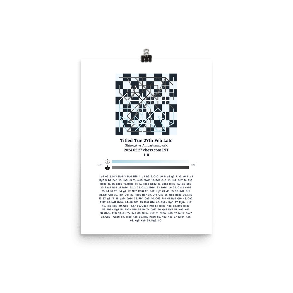 Museum-quality poster on thick, durable matte paper. A sharp, clean look for any chess visualisation.