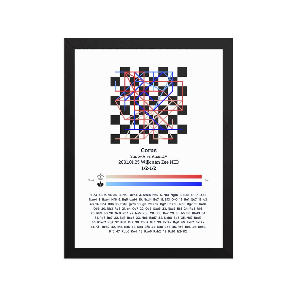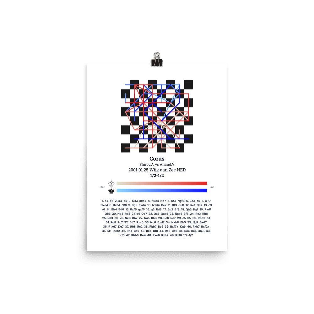 Museum-quality poster on thick, durable matte paper. A sharp, clean look for any chess visualisation.
