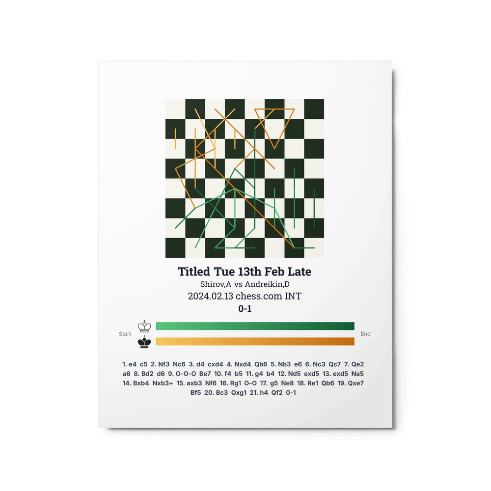 Museum-quality poster on thick, durable matte paper. A sharp, clean look for any chess visualisation.