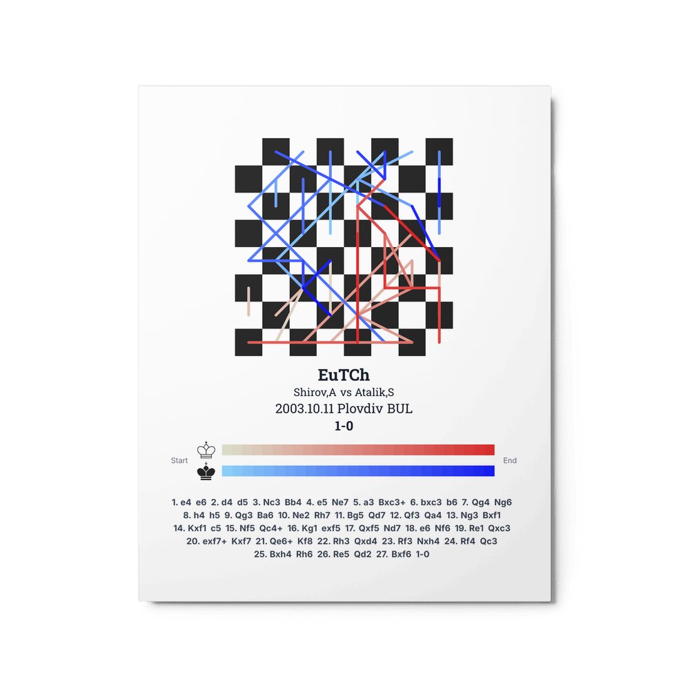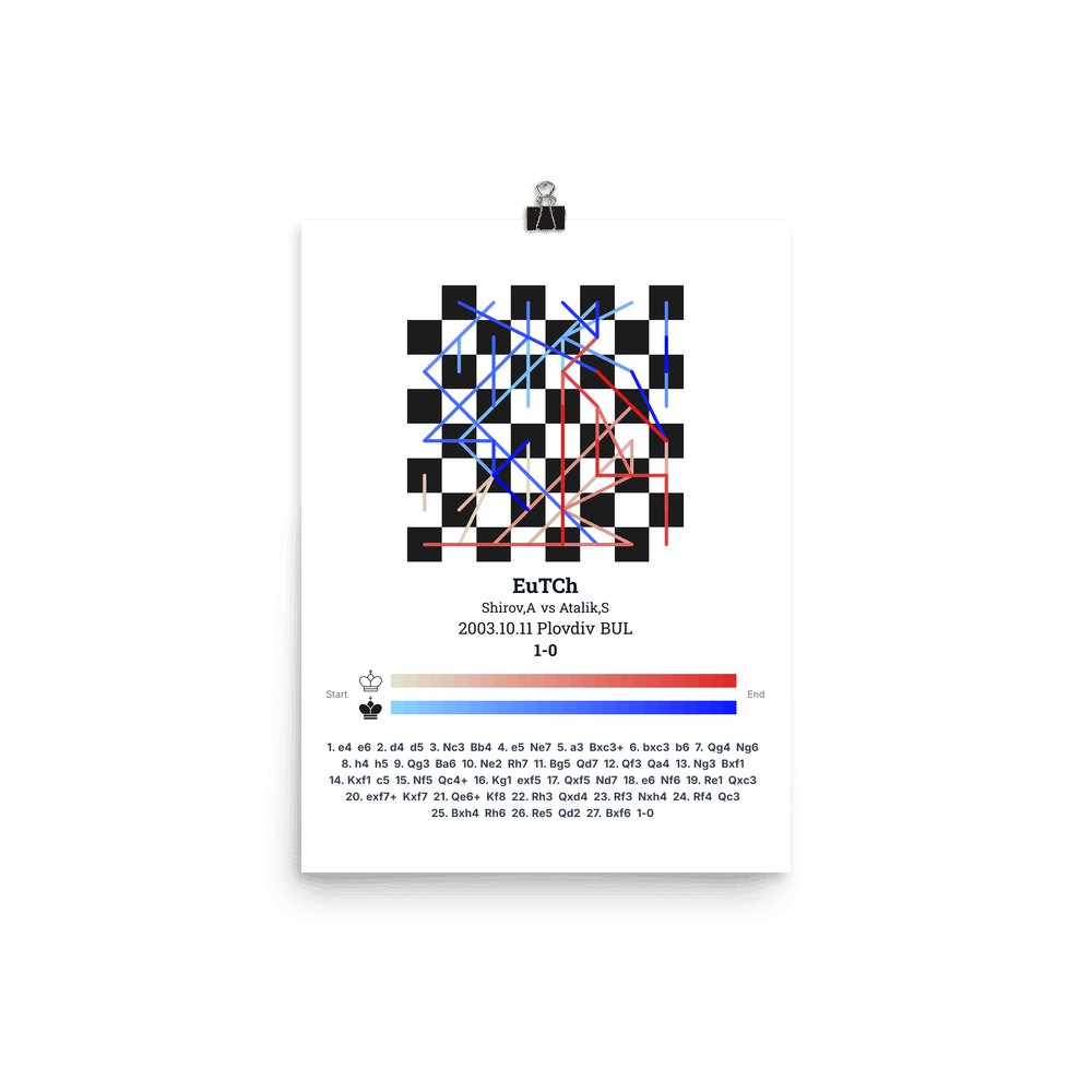 Museum-quality poster on thick, durable matte paper. A sharp, clean look for any chess visualisation.