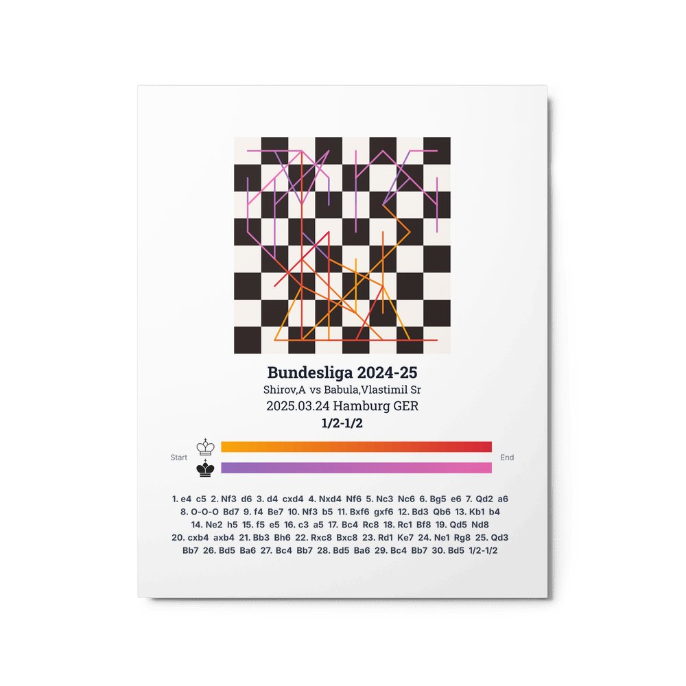 Museum-quality poster on thick, durable matte paper. A sharp, clean look for any chess visualisation.