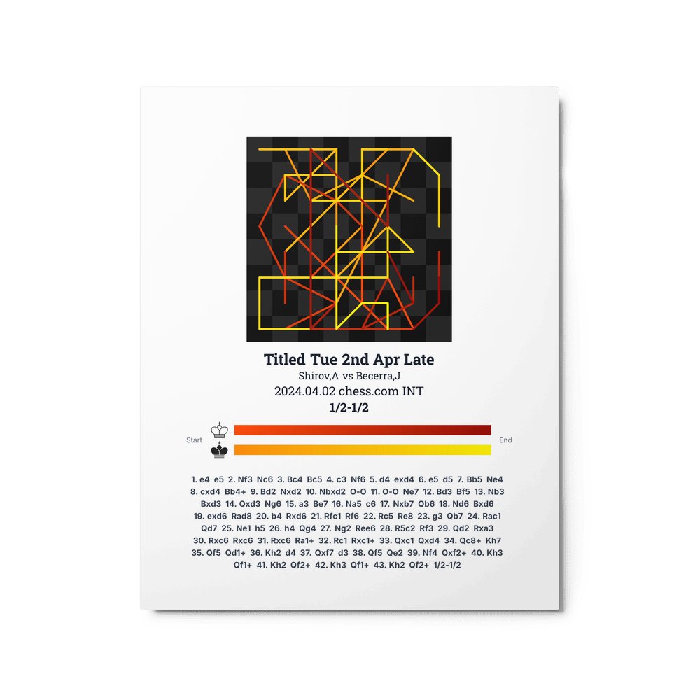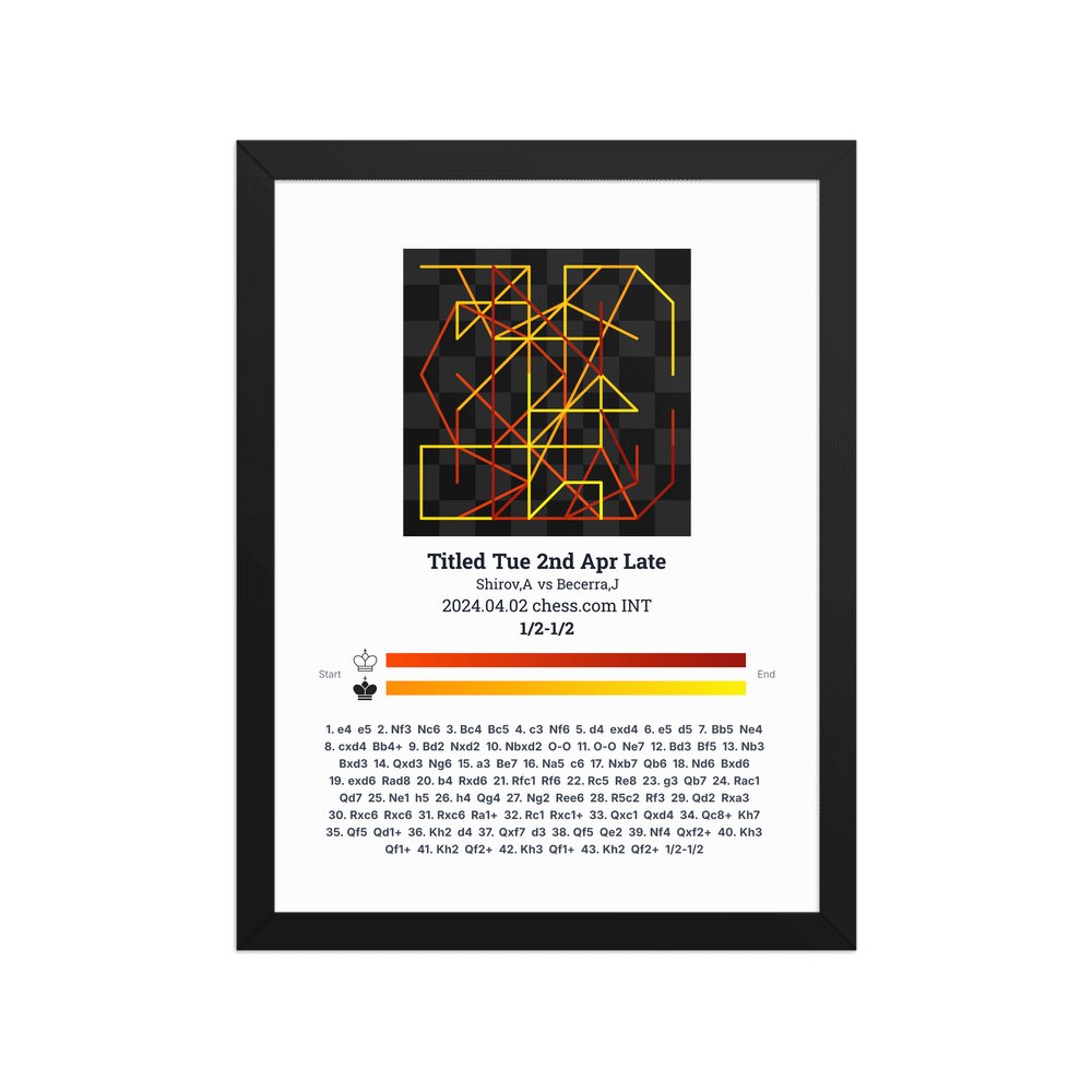 Museum-quality poster on thick, durable matte paper. A sharp, clean look for any chess visualisation.