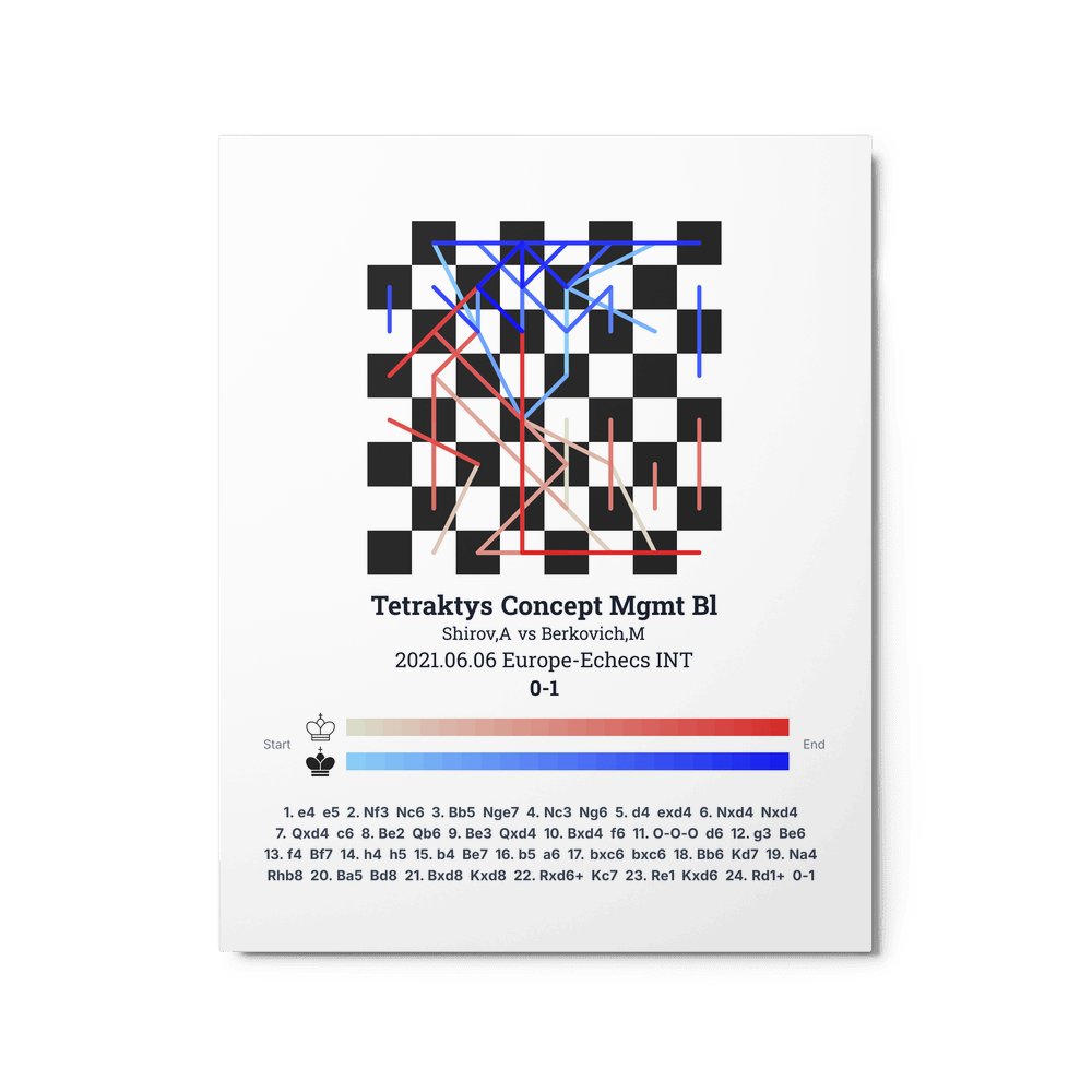 Museum-quality poster on thick, durable matte paper. A sharp, clean look for any chess visualisation.