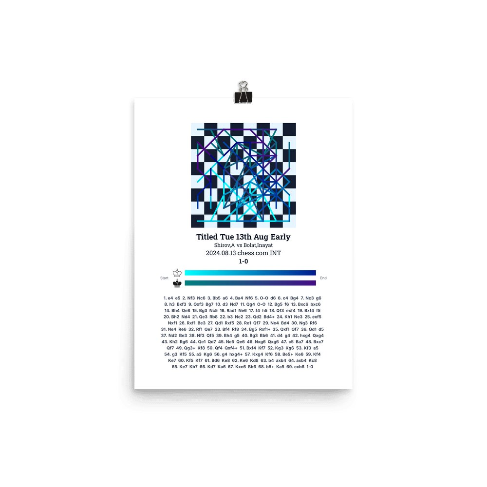 Museum-quality poster on thick, durable matte paper. A sharp, clean look for any chess visualisation.