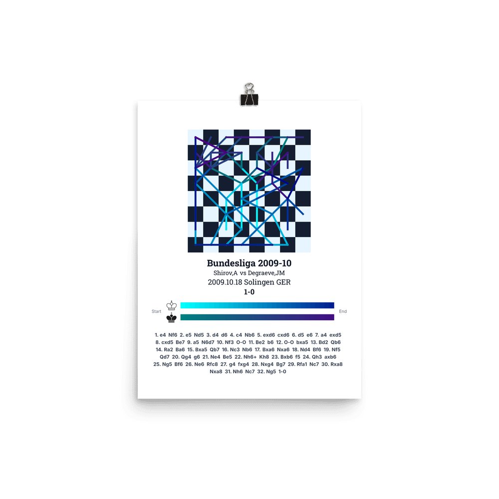 Museum-quality poster on thick, durable matte paper. A sharp, clean look for any chess visualisation.