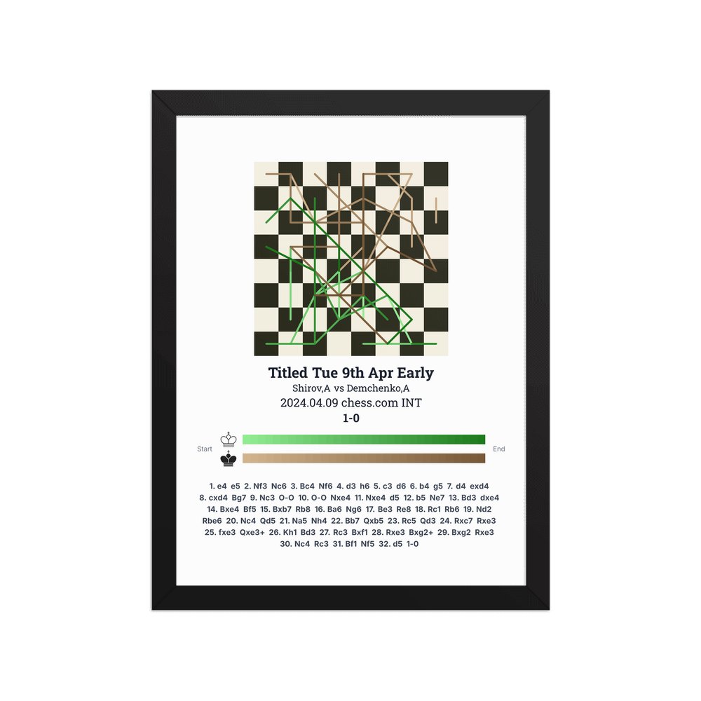 Museum-quality poster on thick, durable matte paper. A sharp, clean look for any chess visualisation.