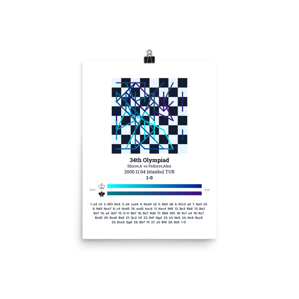 Museum-quality poster on thick, durable matte paper. A sharp, clean look for any chess visualisation.
