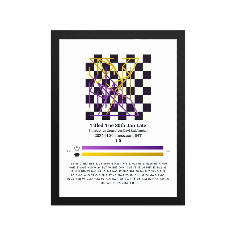 Museum-quality poster on thick, durable matte paper. A sharp, clean look for any chess visualisation.