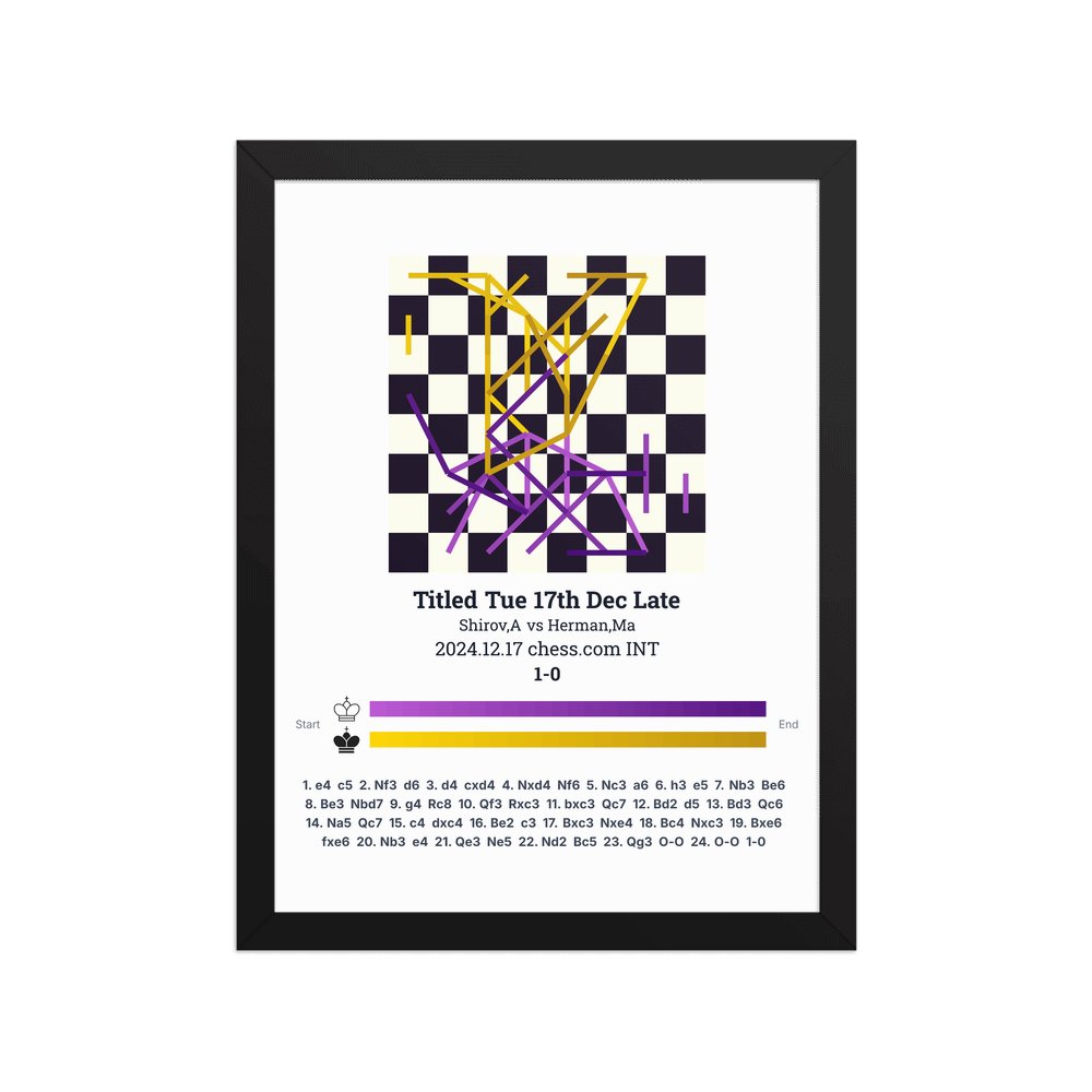 Museum-quality poster on thick, durable matte paper. A sharp, clean look for any chess visualisation.