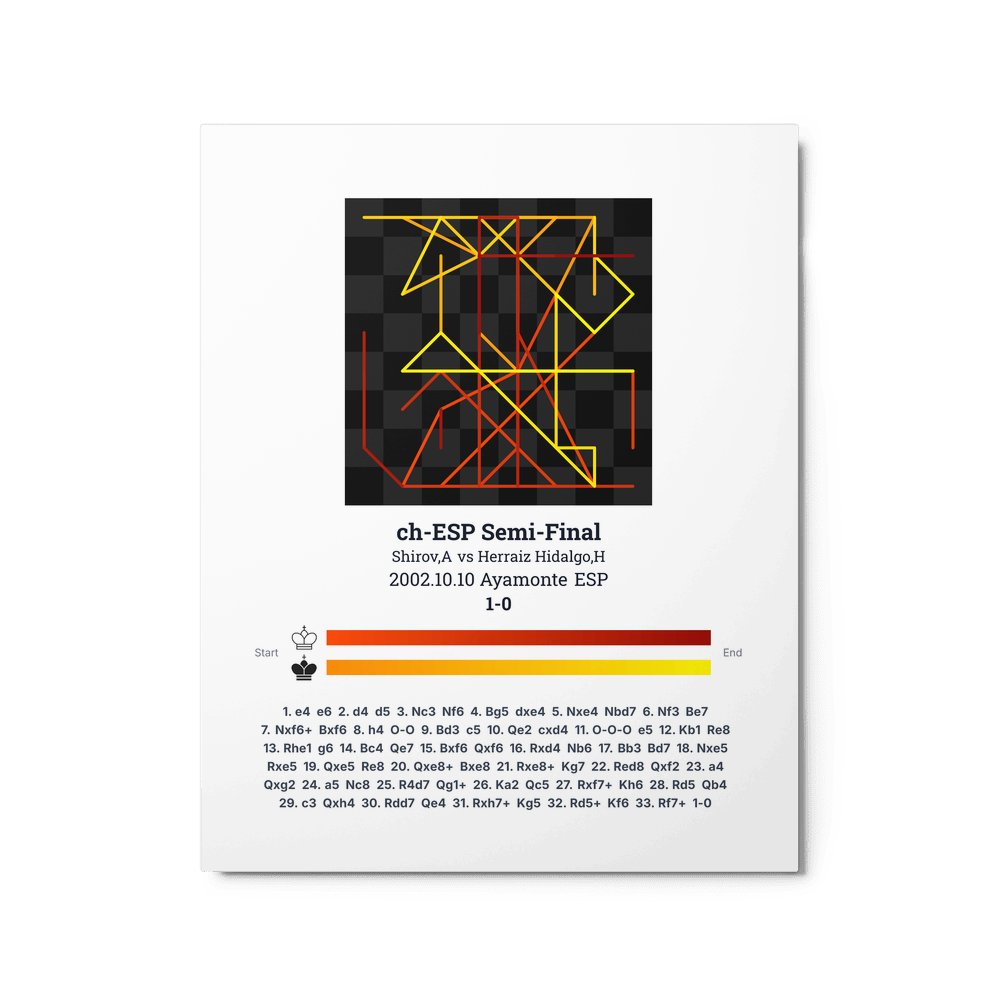 Museum-quality poster on thick, durable matte paper. A sharp, clean look for any chess visualisation.