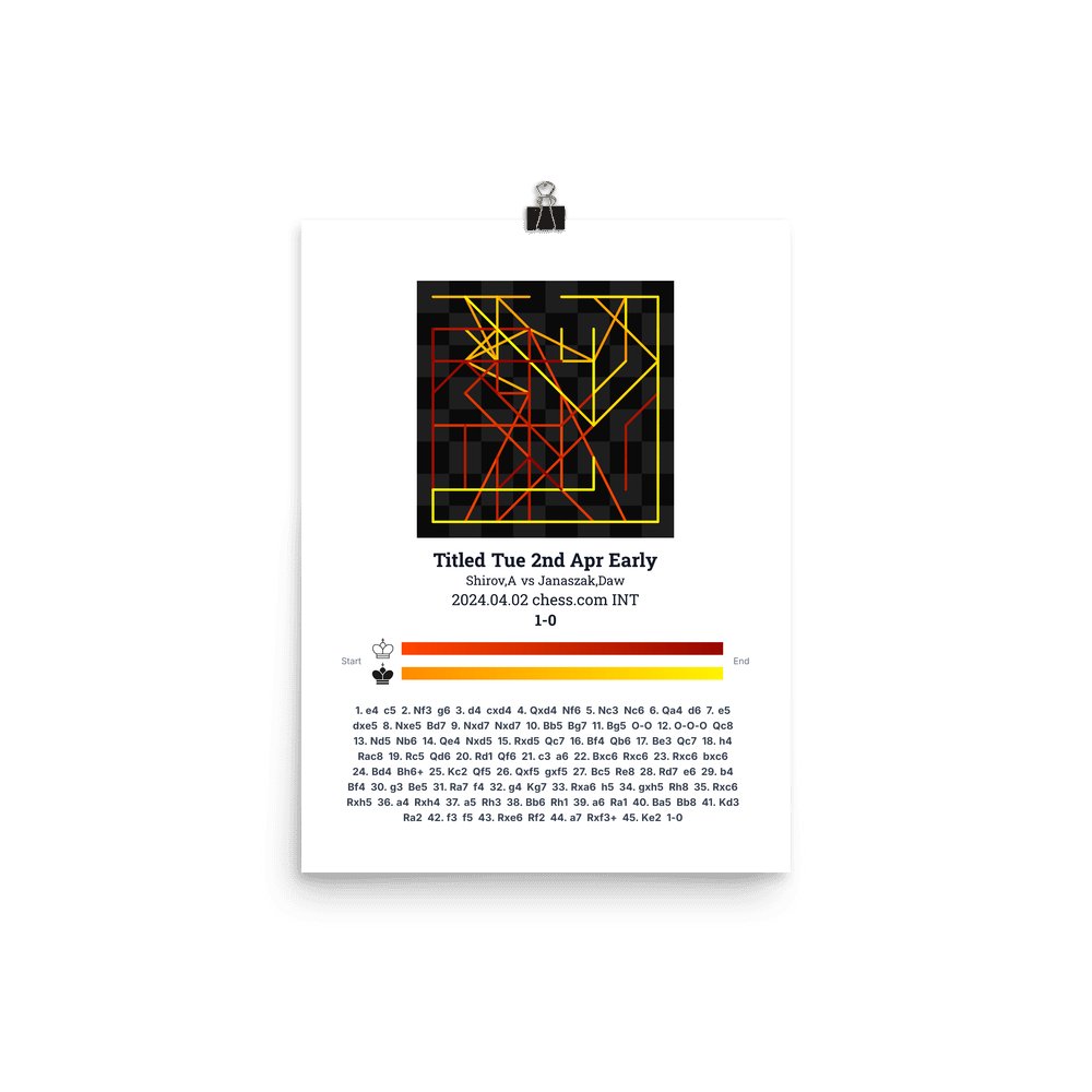 Museum-quality poster on thick, durable matte paper. A sharp, clean look for any chess visualisation.