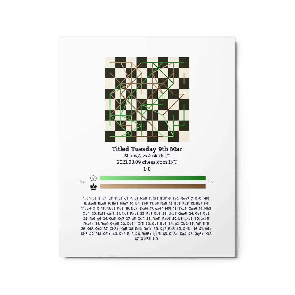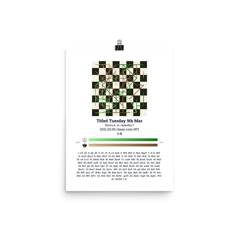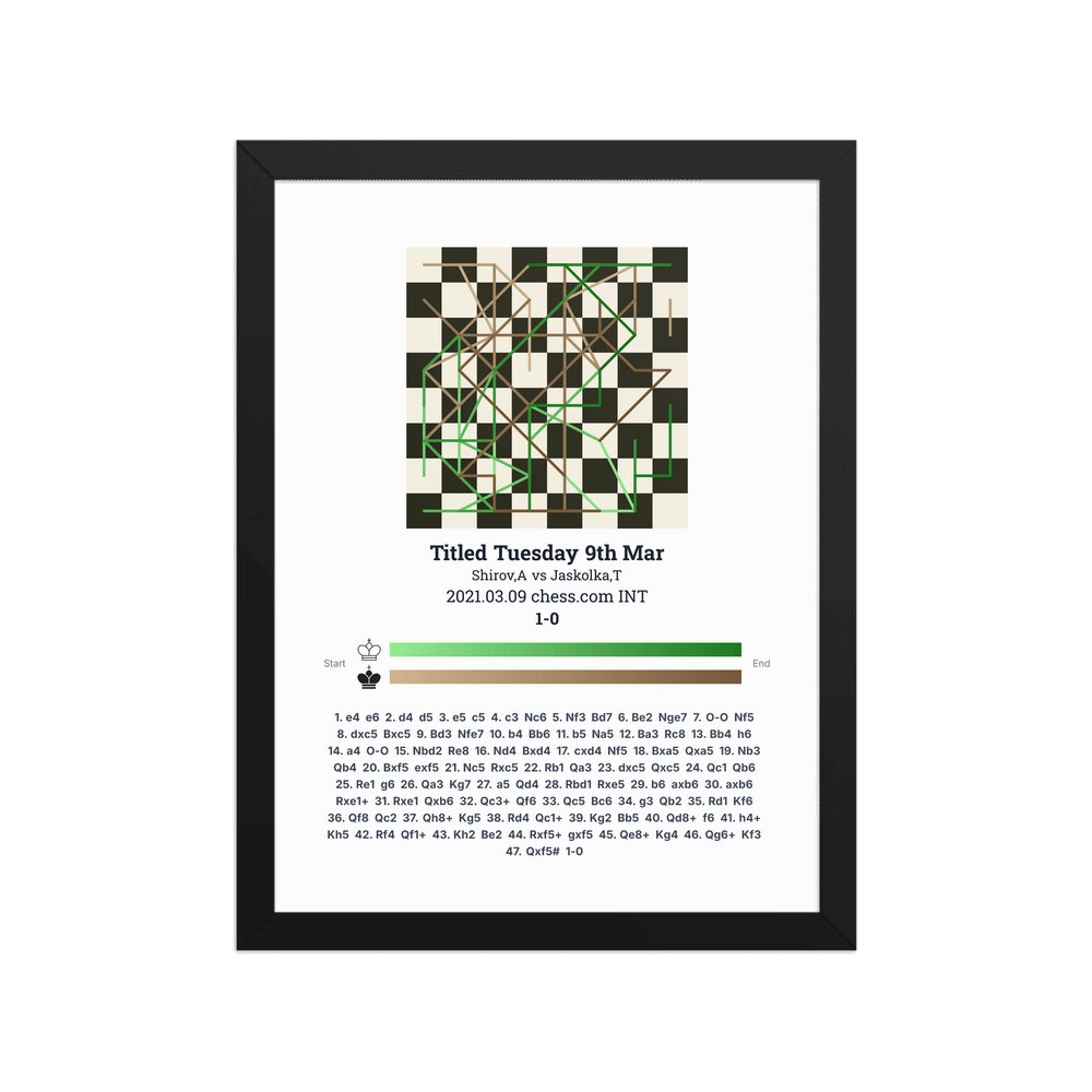 Museum-quality poster on thick, durable matte paper. A sharp, clean look for any chess visualisation.
