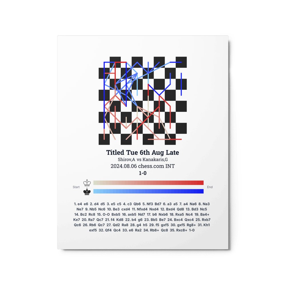 Museum-quality poster on thick, durable matte paper. A sharp, clean look for any chess visualisation.