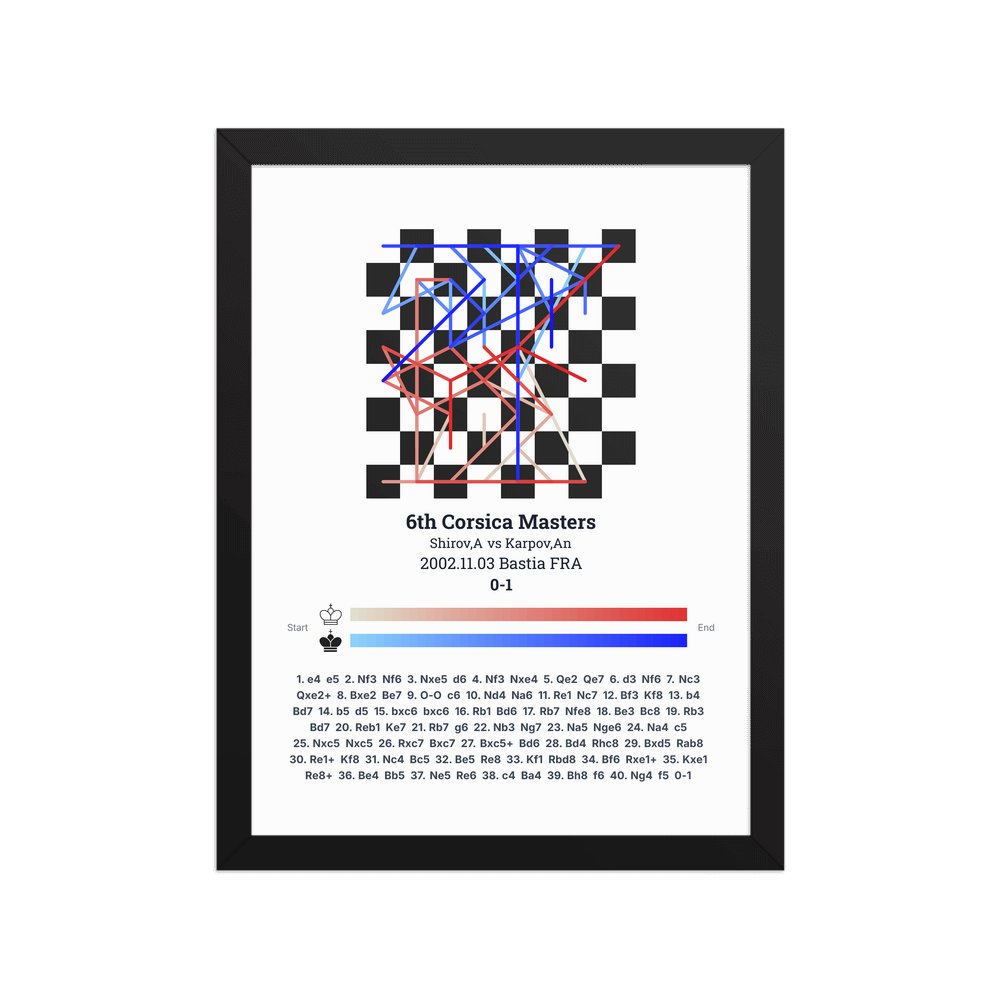 Museum-quality poster on thick, durable matte paper. A sharp, clean look for any chess visualisation.
