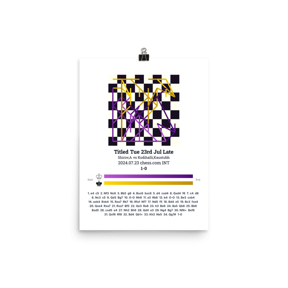 Museum-quality poster on thick, durable matte paper. A sharp, clean look for any chess visualisation.