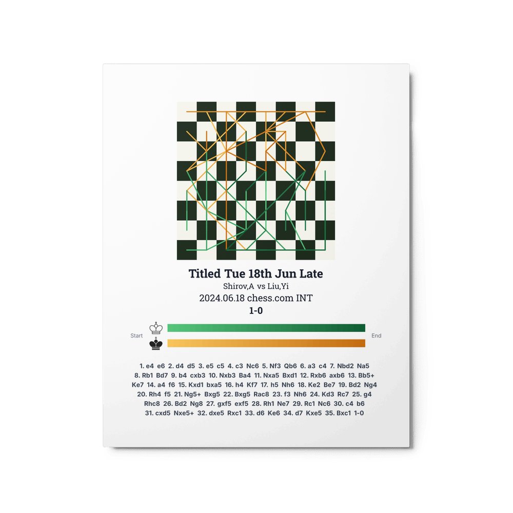 Museum-quality poster on thick, durable matte paper. A sharp, clean look for any chess visualisation.
