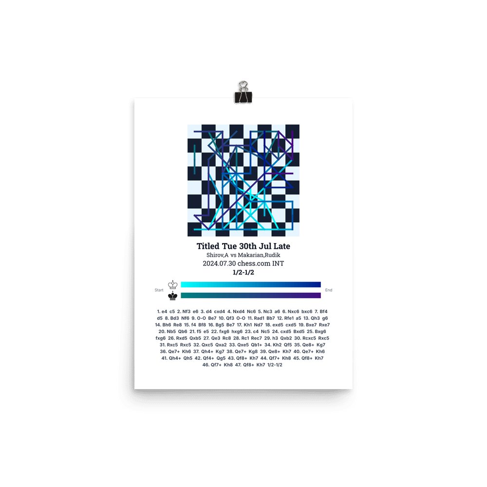 Museum-quality poster on thick, durable matte paper. A sharp, clean look for any chess visualisation.