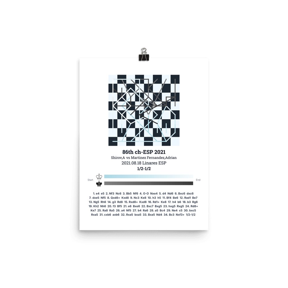 Museum-quality poster on thick, durable matte paper. A sharp, clean look for any chess visualisation.
