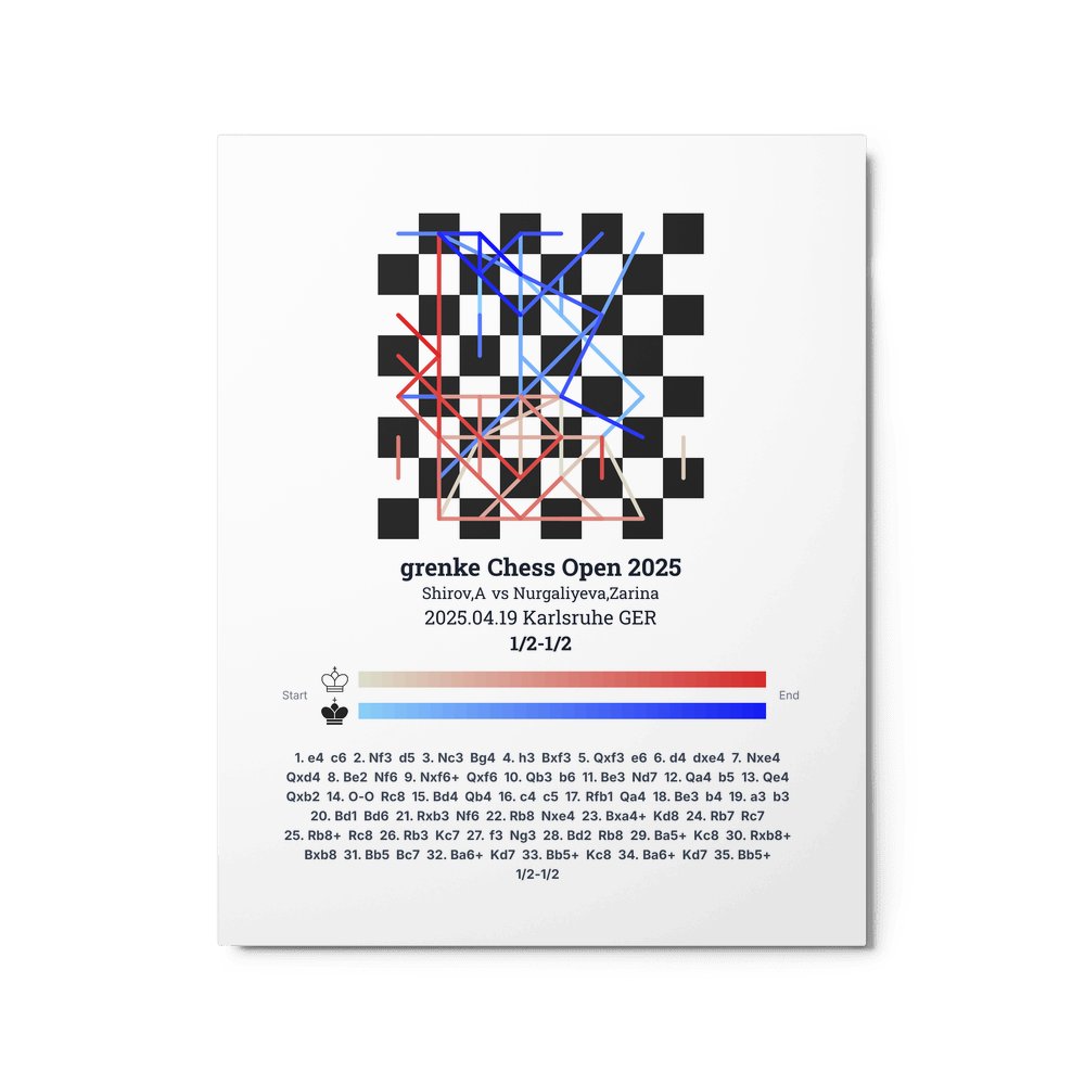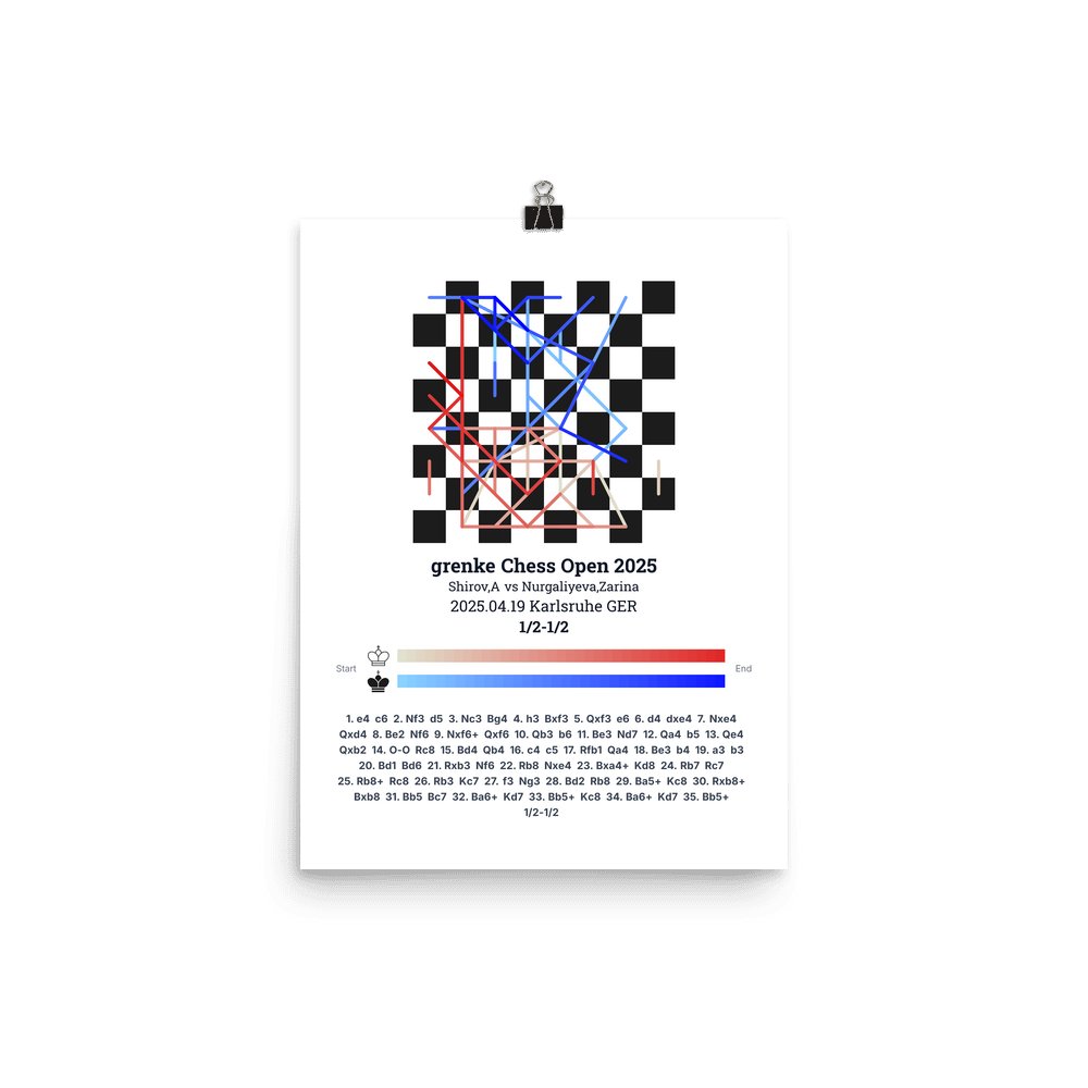 Museum-quality poster on thick, durable matte paper. A sharp, clean look for any chess visualisation.