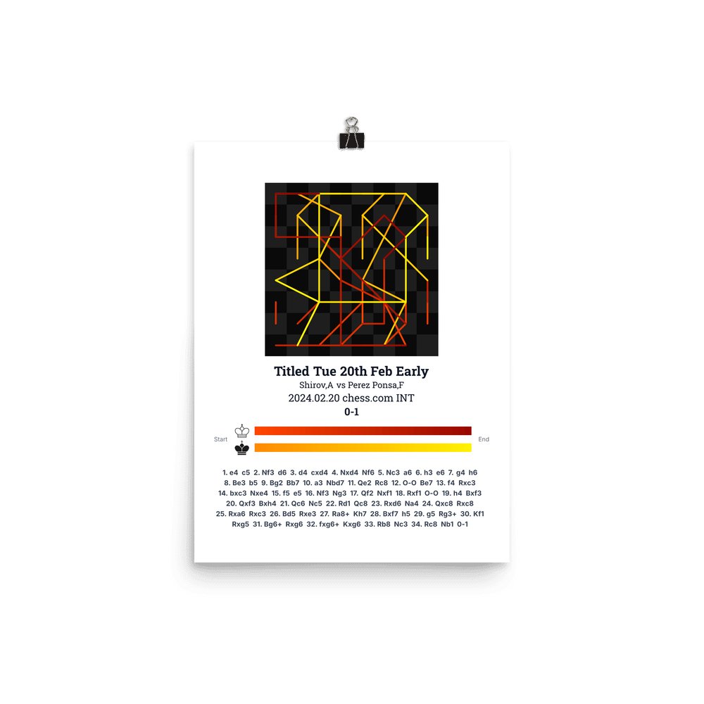 Museum-quality poster on thick, durable matte paper. A sharp, clean look for any chess visualisation.