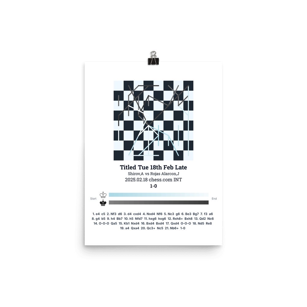 Museum-quality poster on thick, durable matte paper. A sharp, clean look for any chess visualisation.
