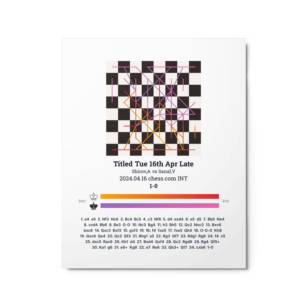 Museum-quality poster on thick, durable matte paper. A sharp, clean look for any chess visualisation.