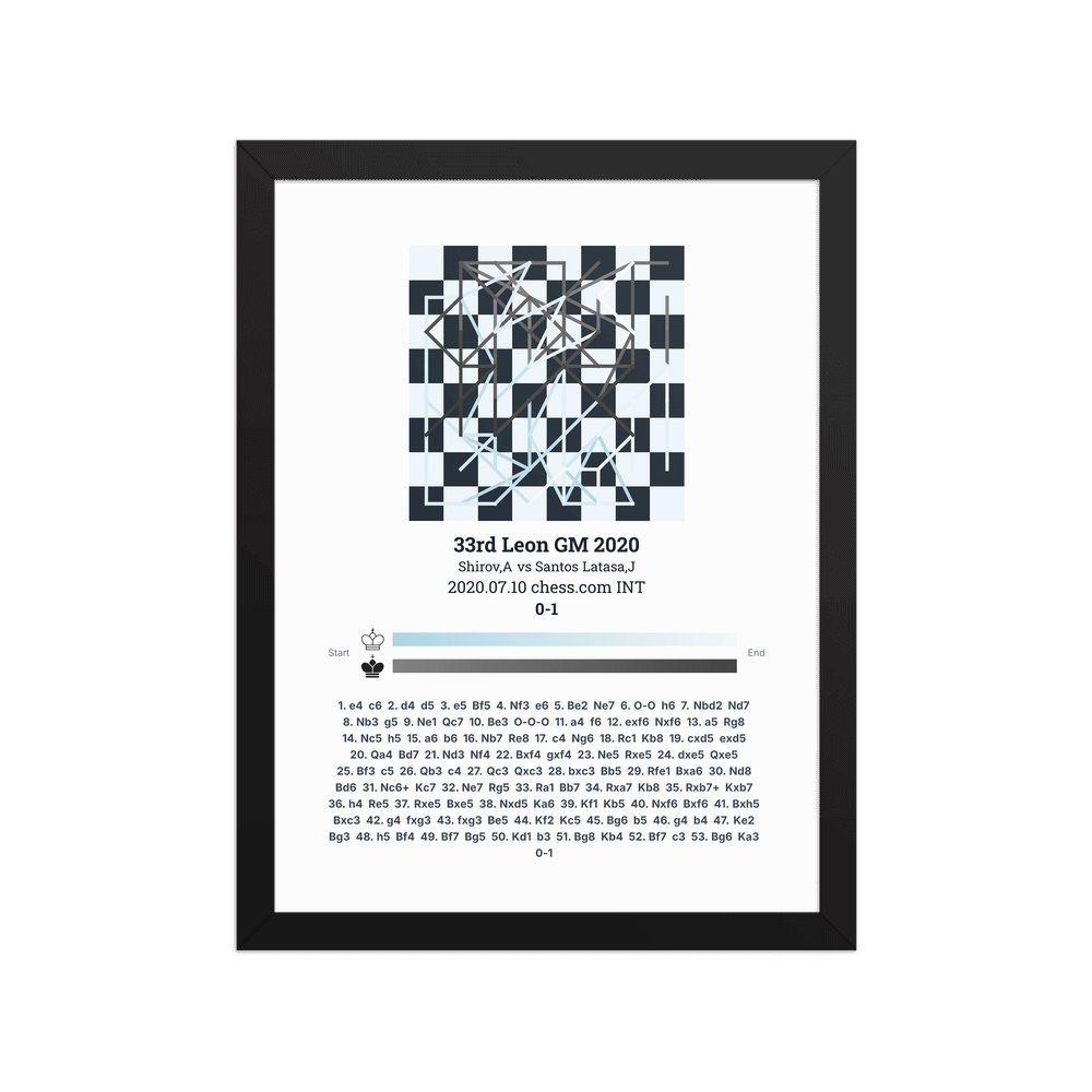 Museum-quality poster on thick, durable matte paper. A sharp, clean look for any chess visualisation.