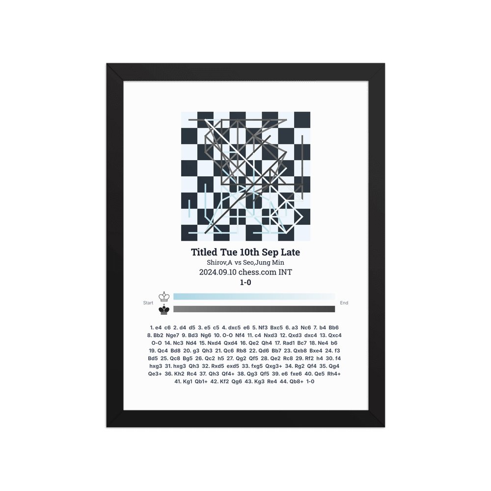 Museum-quality poster on thick, durable matte paper. A sharp, clean look for any chess visualisation.
