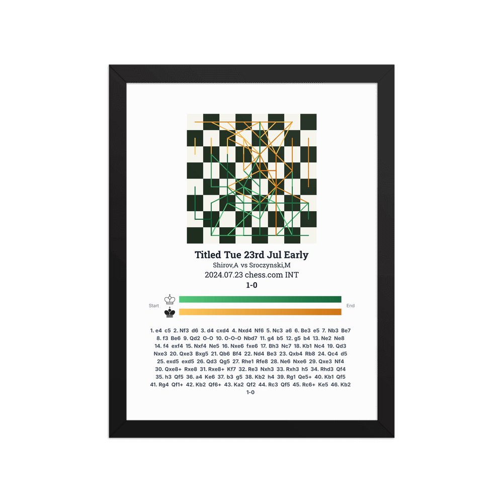 Museum-quality poster on thick, durable matte paper. A sharp, clean look for any chess visualisation.