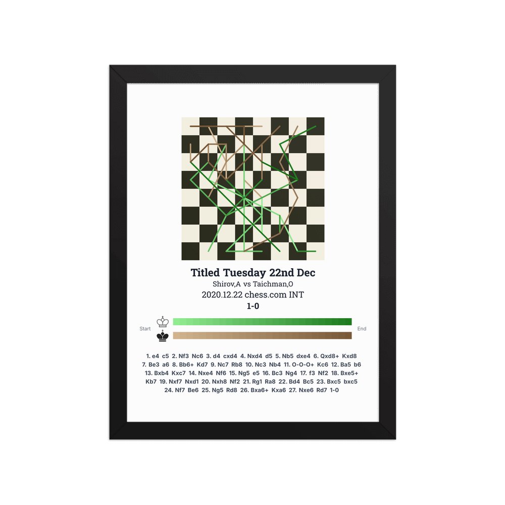 Museum-quality poster on thick, durable matte paper. A sharp, clean look for any chess visualisation.