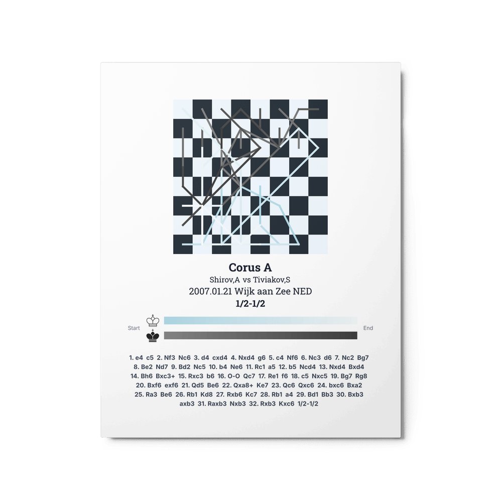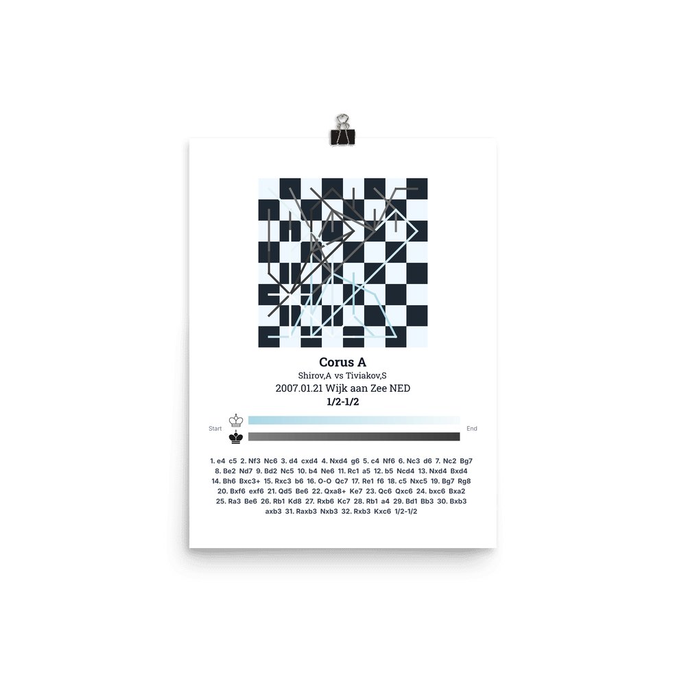 Museum-quality poster on thick, durable matte paper. A sharp, clean look for any chess visualisation.