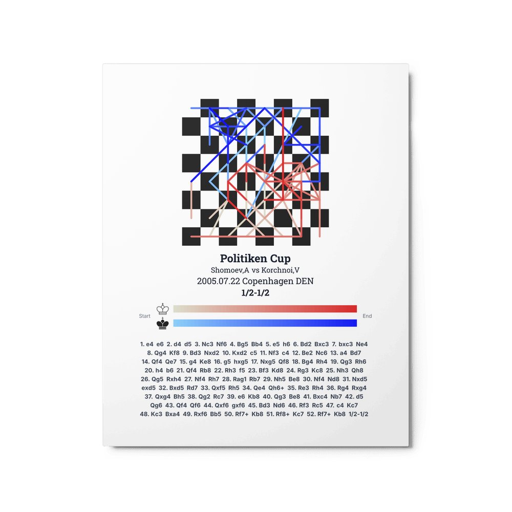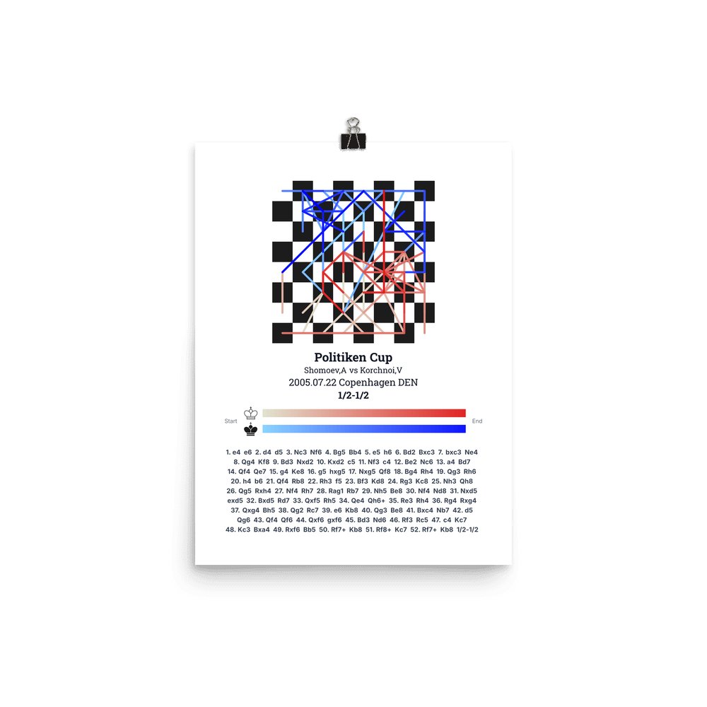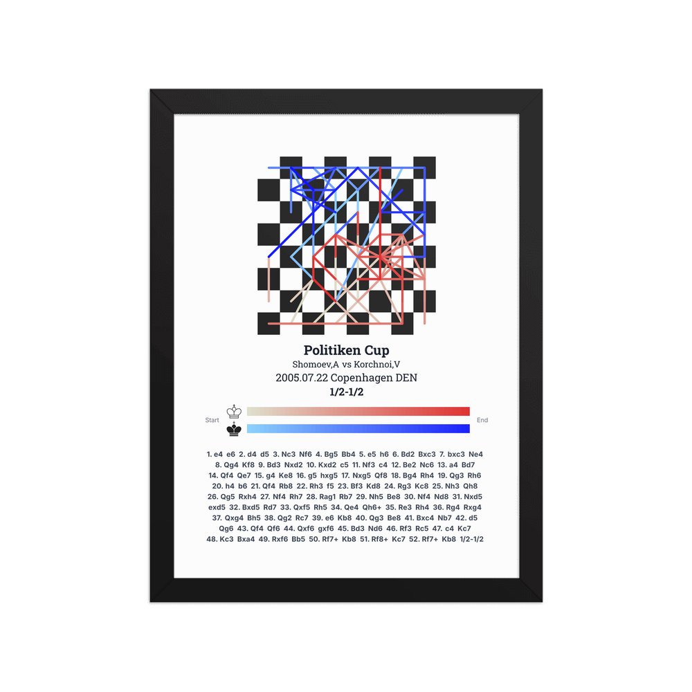 Museum-quality poster on thick, durable matte paper. A sharp, clean look for any chess visualisation.
