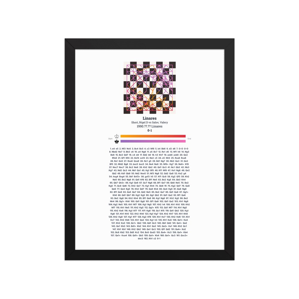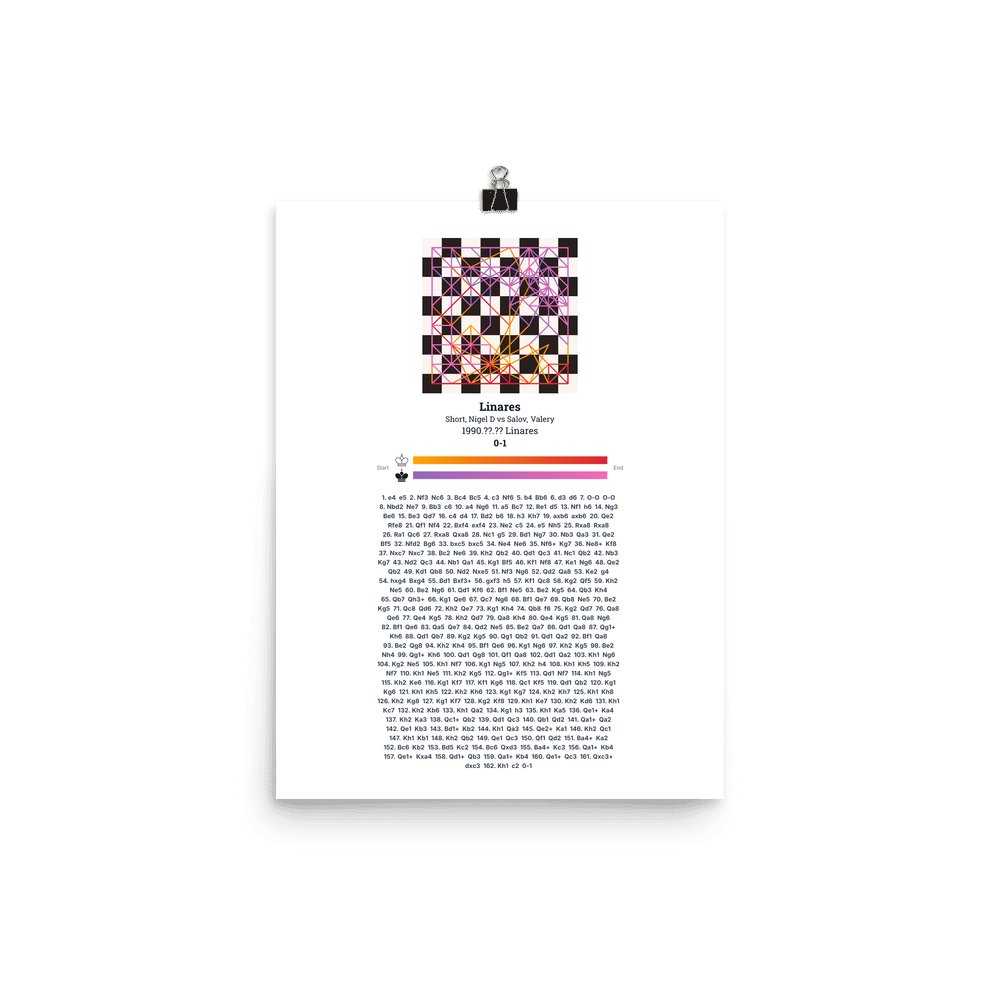 Museum-quality poster on thick, durable matte paper. A sharp, clean look for any chess visualisation.