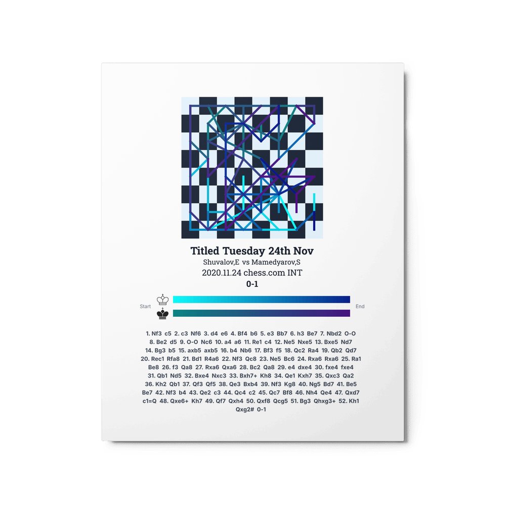 Museum-quality poster on thick, durable matte paper. A sharp, clean look for any chess visualisation.