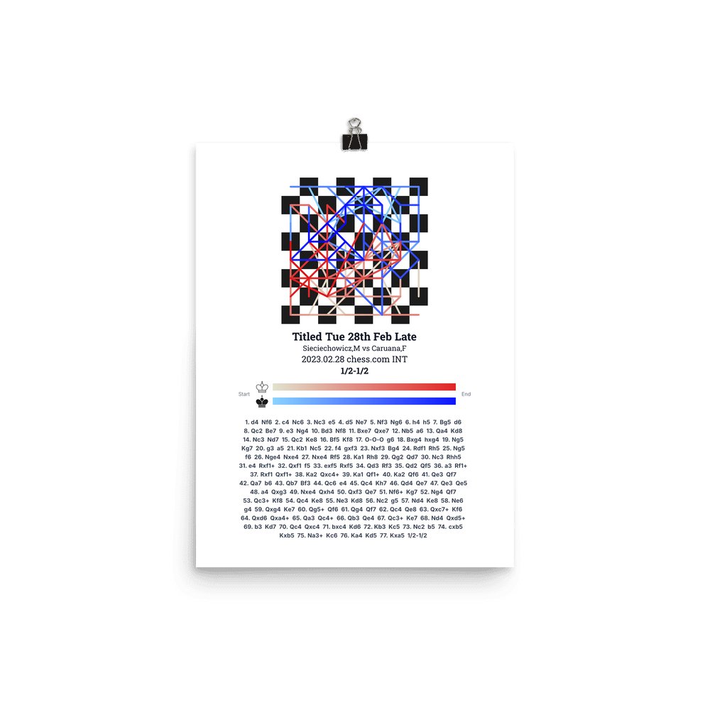 Museum-quality poster on thick, durable matte paper. A sharp, clean look for any chess visualisation.