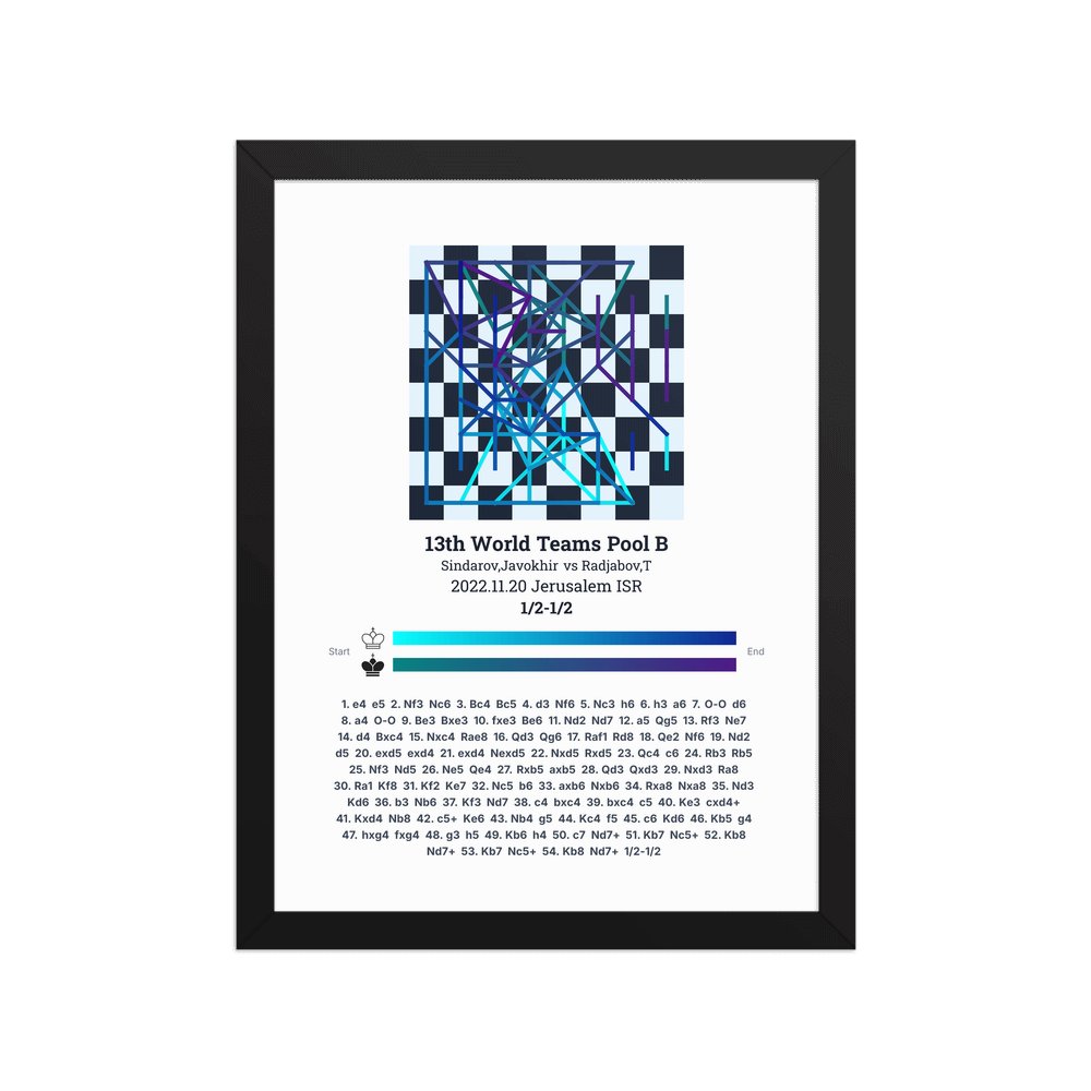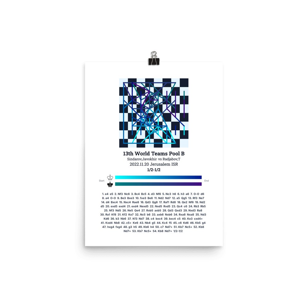 Museum-quality poster on thick, durable matte paper. A sharp, clean look for any chess visualisation.