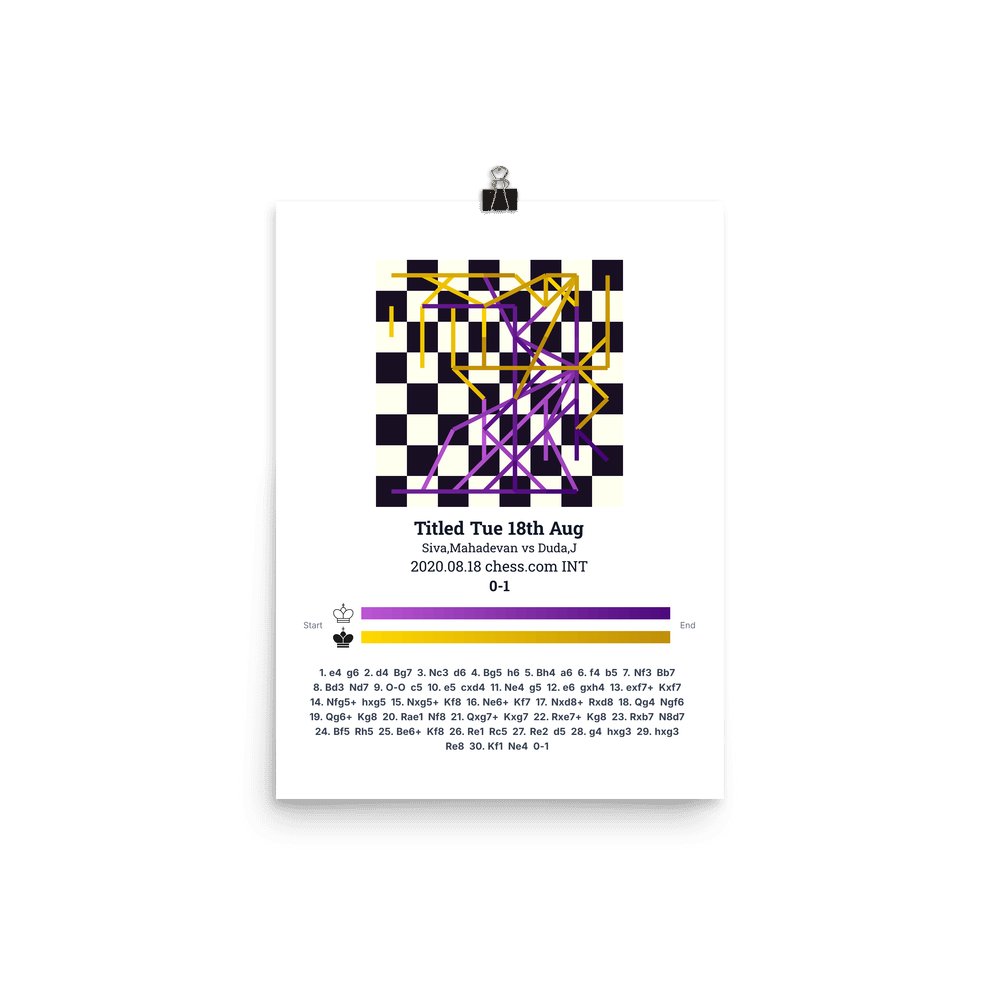 Museum-quality poster on thick, durable matte paper. A sharp, clean look for any chess visualisation.