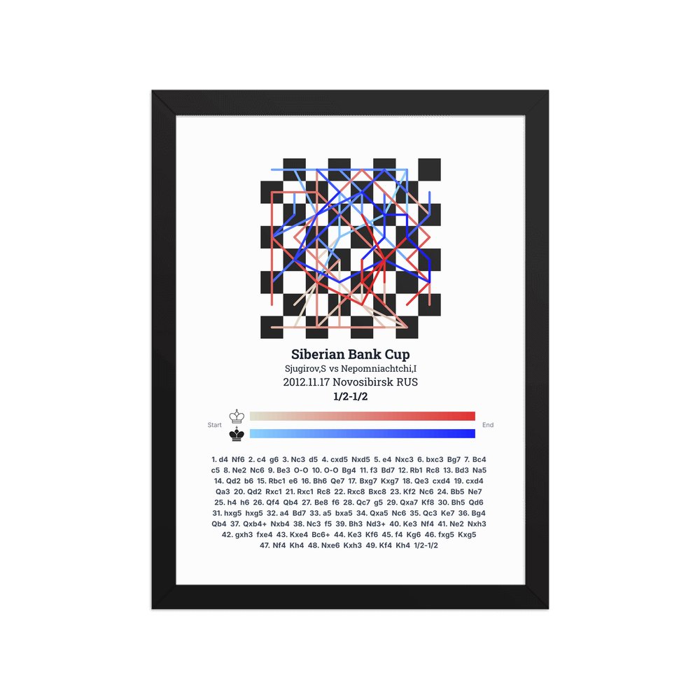 Museum-quality poster on thick, durable matte paper. A sharp, clean look for any chess visualisation.