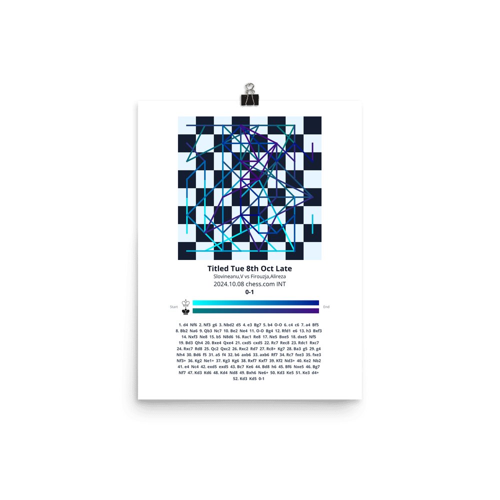 Museum-quality poster on thick, durable matte paper. A sharp, clean look for any chess visualisation.