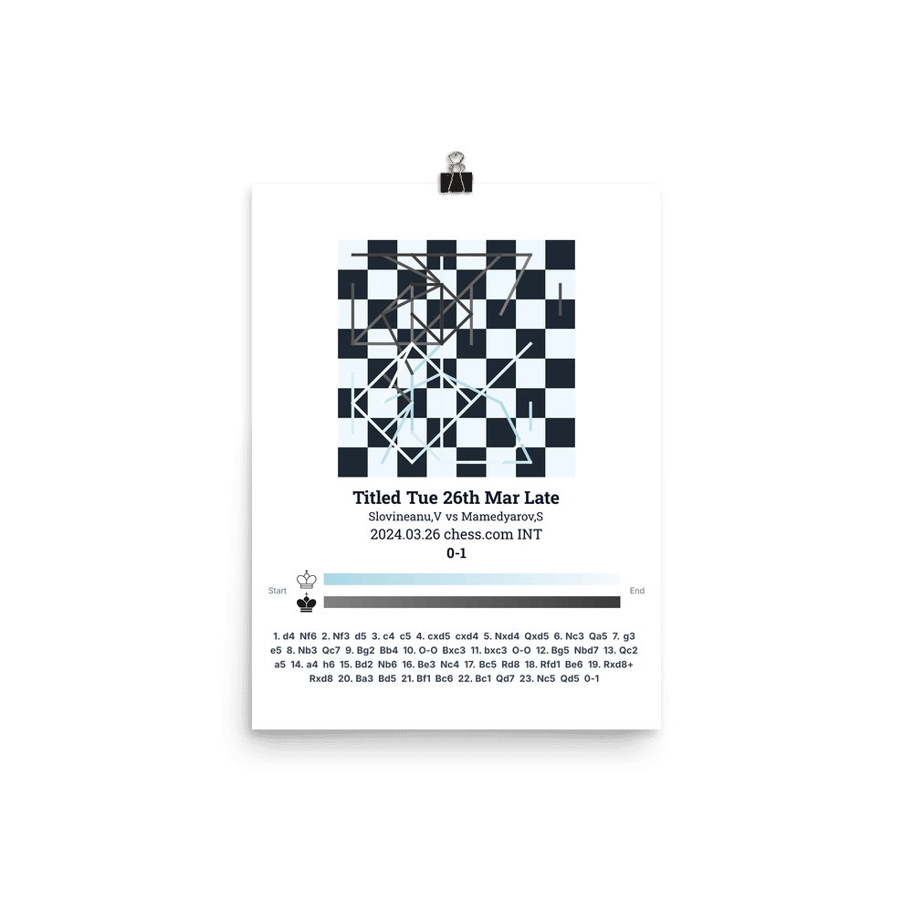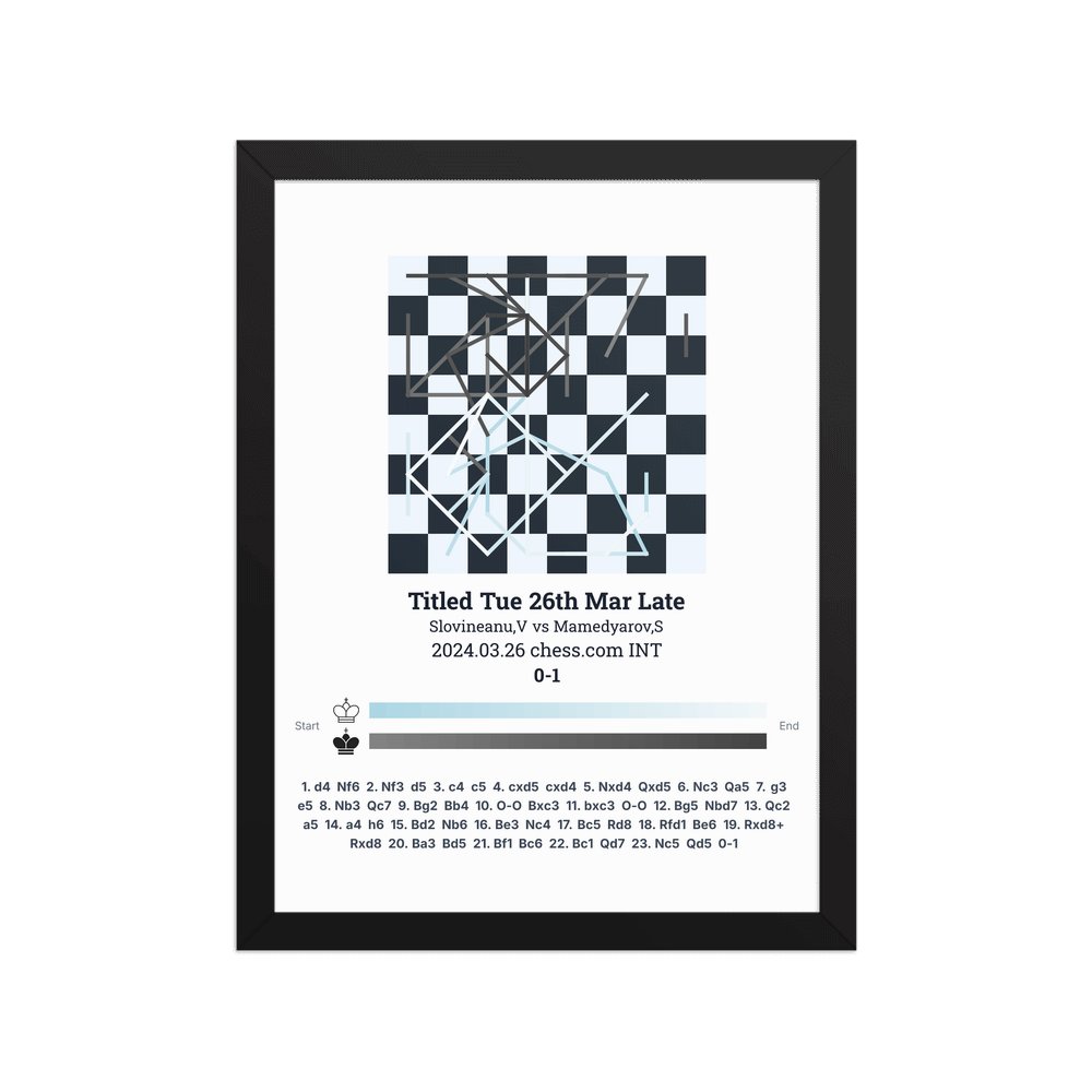 Museum-quality poster on thick, durable matte paper. A sharp, clean look for any chess visualisation.