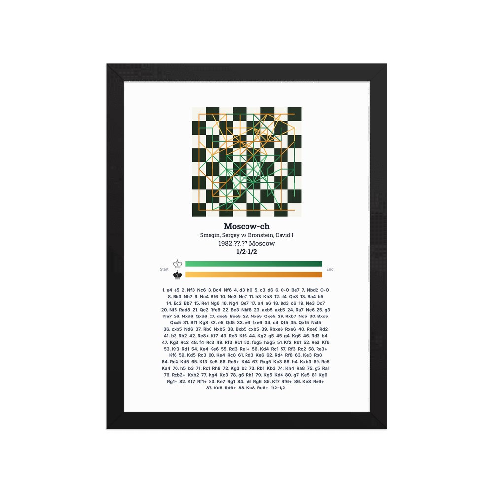 Museum-quality poster on thick, durable matte paper. A sharp, clean look for any chess visualisation.